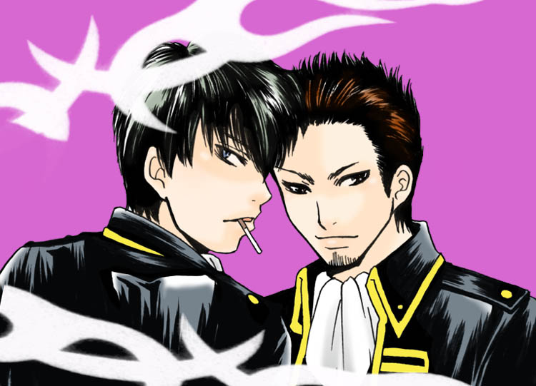 オンリーの企画カット元絵に色塗ったやつを 置いていきますね。 あらためて近藤さん誕生日おめでとう! ぬるいですが土近チュー絵につき一応<続き>で。 |